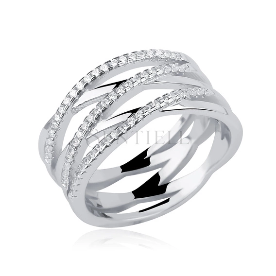 Srebrny, duży pierścionek skrzyżowany pr.925 cyrkonia biała