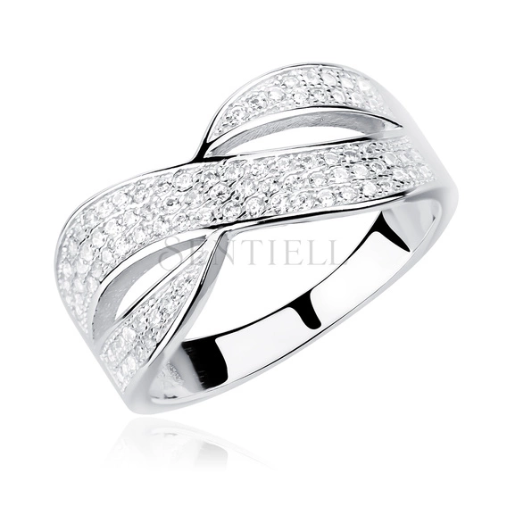 - Rodowany srebrny pierścionek pr. 925 cyrkonia