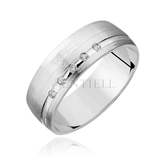 Srebrna obrączka pr.925 satynowana z cyrkoniami