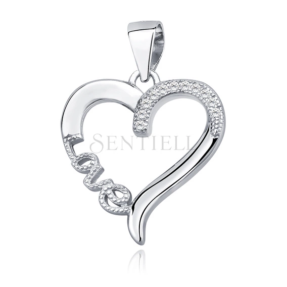 Srebrna zawieszka pr.925 serce z cyrkoniami i napisem love