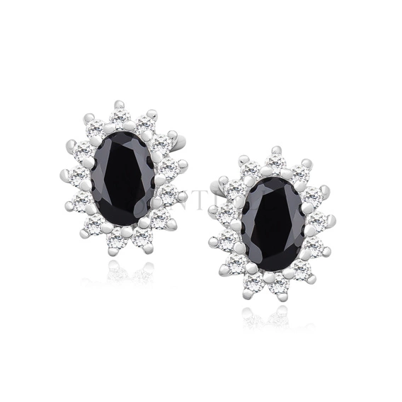 Srebrne kolczyki pr. 925 Cyrkonia czarna - karmazycja