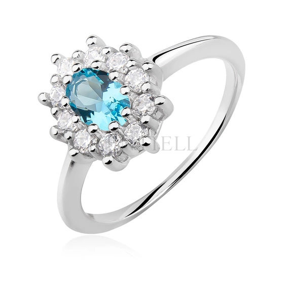 Srebrny pierścionek pr.925 z akwamarynową cyrkonią - karmazycja
