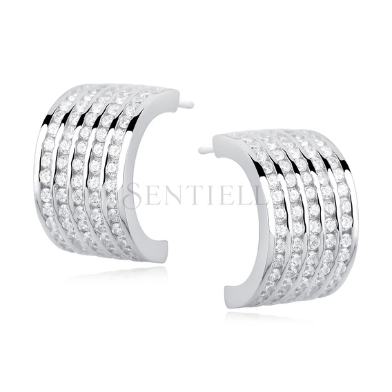 Srebrne kolczyki pr.925 otwarte półkola z cyrkoniami