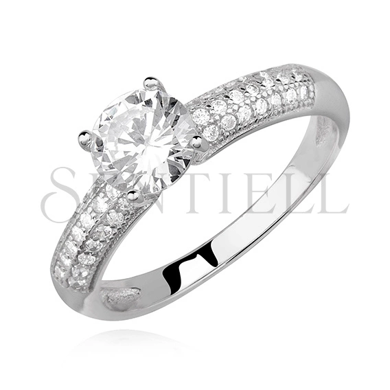 Srebrny pierścionek pr.925 z białą cyrkonią