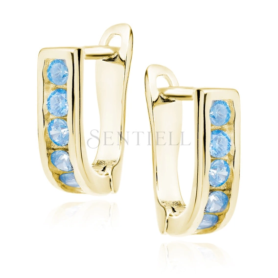 Srebrne kolczyki pr.925 złocone - akwamarynowa cyrkonia