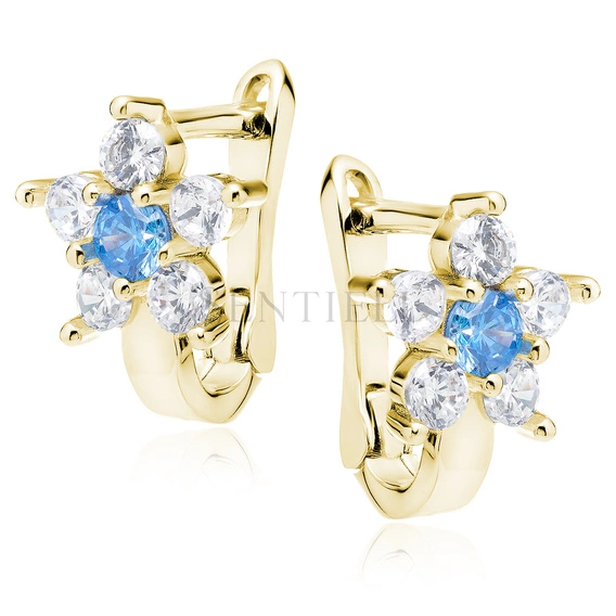 Srebrne kolczyki pr.925 cyrkonia akwamarynowa, złocony kwiatek