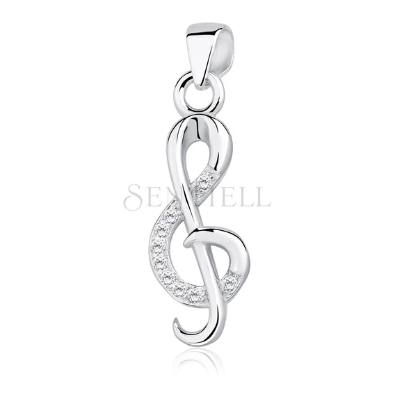 Srebrna zawieszka pr.925 klucz wiolinowy z cyrkoniami