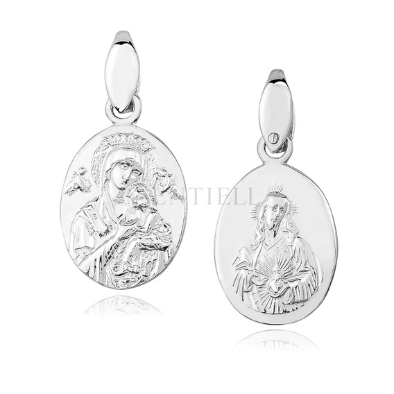 Srebrny (pr.925) medalik diamentowany Matka Boska Nieustającej Pomocy / Serce Jezusa - dwustronny