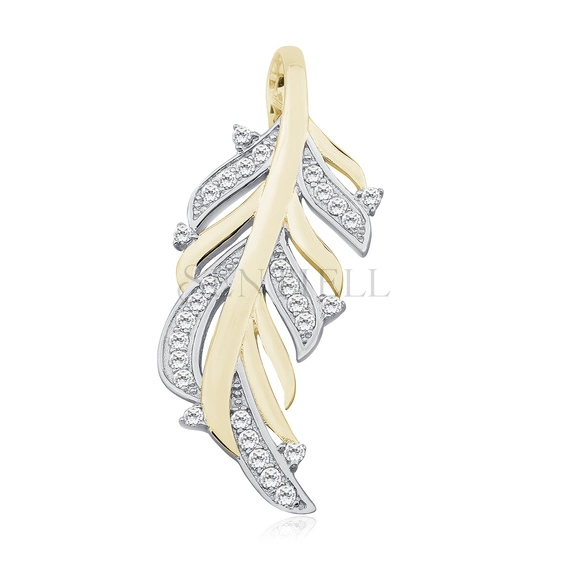 Srebrna zawieszka pr.925 z cyrkoniami, pozłacane pióro