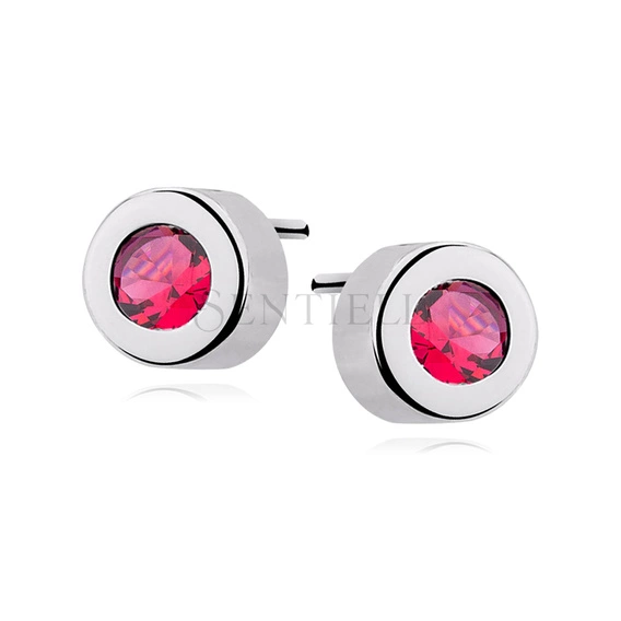 Srebrne okrągłe kolczyki pr.925 Cyrkonia rubinowa