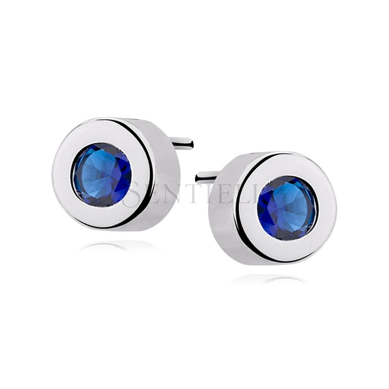Srebrne okrągłe kolczyki pr.925 Cyrkonia szafirowa