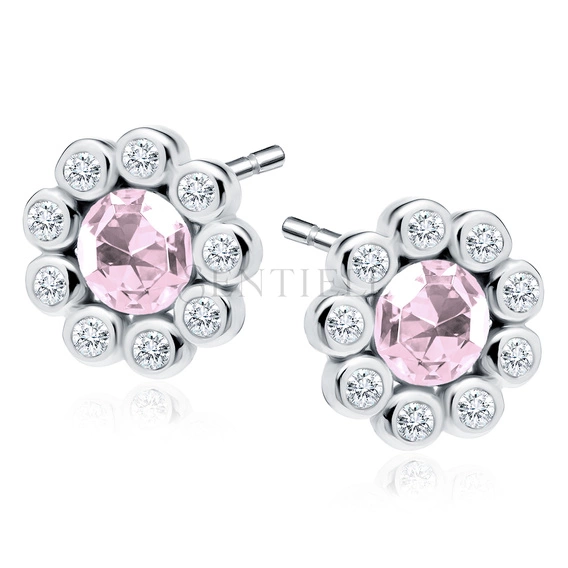 Srebrne kolczyki pr.925 z jasnoróżową cyrkonią