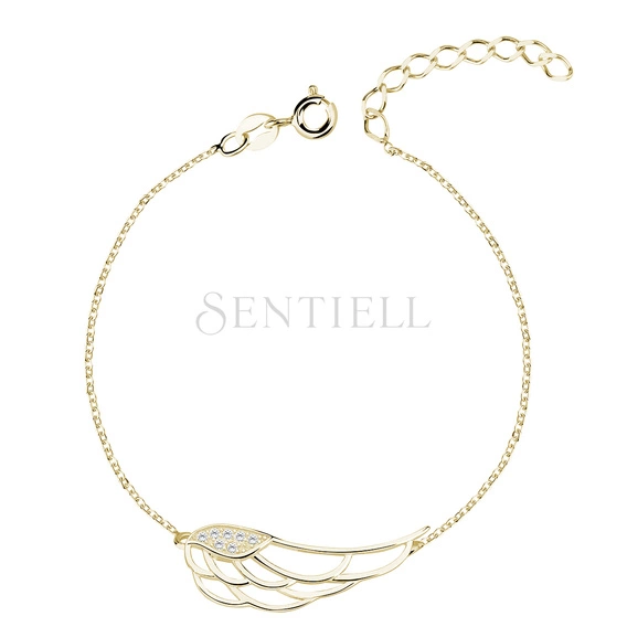 Srebrna bransoletka pr. 925 skrzydło z cyrkoniami, pozłacane