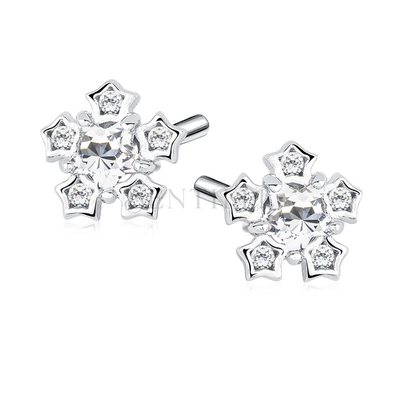 Srebrne pr.925 kolczyki śnieżynki / płatki śniegu z cyrkonią