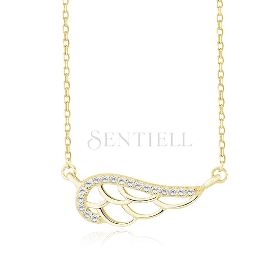 Srebrny naszyjnik pr.925 skrzydło z cyrkoniami, pozłacane