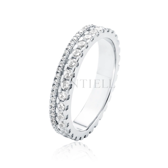 - Rodowany srebrny pierścionek pr. 925 cyrkonia