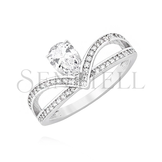 - Rodowany srebrny pierścionek pr. 925 cyrkonia