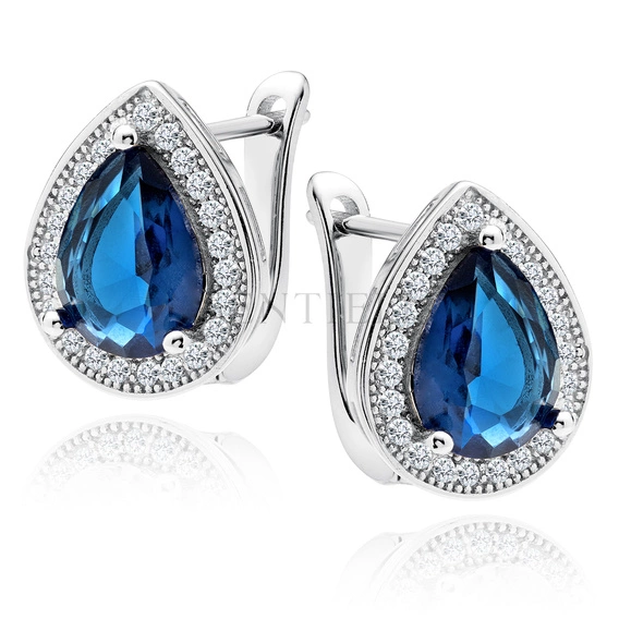 Srebrne pr.925 kolczyki cyrkonia szafirowa