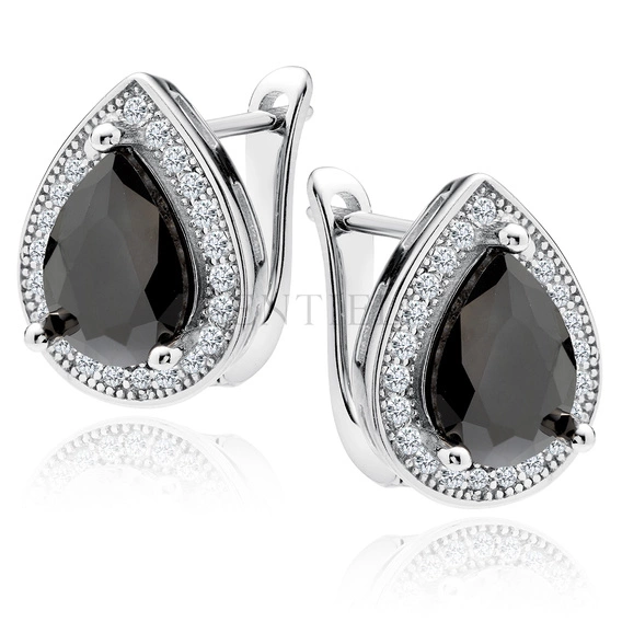 Srebrne pr.925 kolczyki cyrkonia czarna