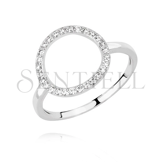 - Rodowany srebrny pierścionek pr. 925 cyrkonia