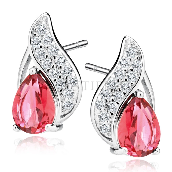 Srebrne pr.925 kolczyki cyrkonia rubinowa