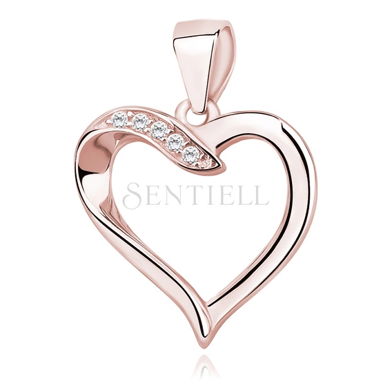 Srebrna pozłacana zawieszka pr.925 serce z cyrkoniami, różowe złoto
