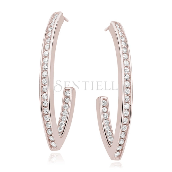 Srebrne pozłacane kolczyki pr. 925 z cyrkoniami, różowe złoto