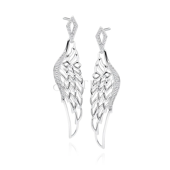 Srebrne pr. 925 kolczyki - duże skrzydła z cyrkoniami