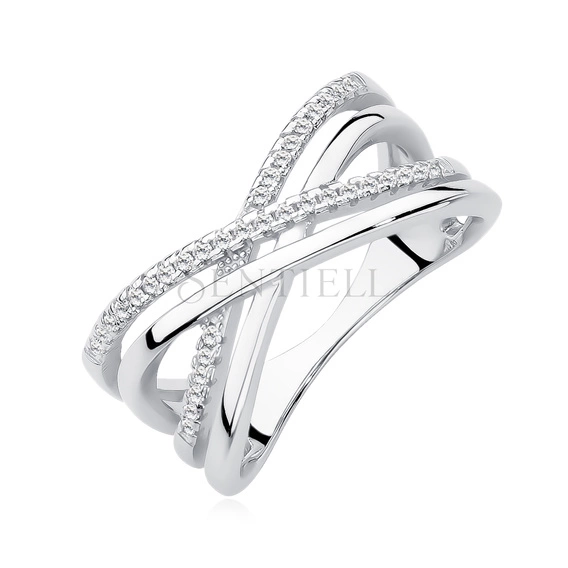 - Rodowany srebrny pierścionek pr. 925 cyrkonia