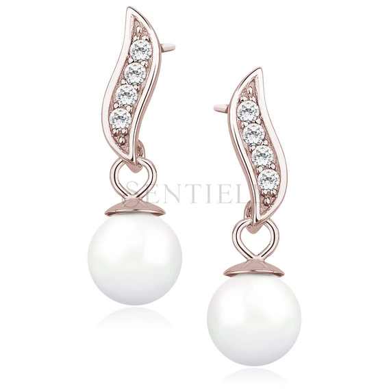 Srebrne pozłacane kolczyki pr. 925 perełki z cyrkoniami - różowe-złoto