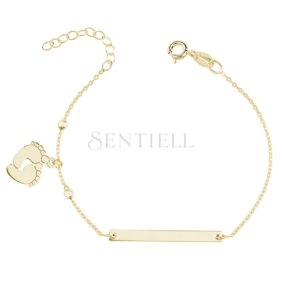 Srebrna bransoletka pr.925 z blaszką - stópki, pozłacana
