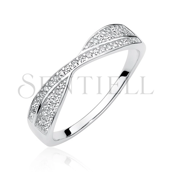 - Rodowany srebrny pierścionek pr. 925 cyrkonia