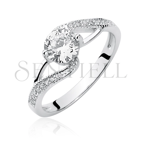 - Rodowany srebrny pierścionek pr. 925 cyrkonia