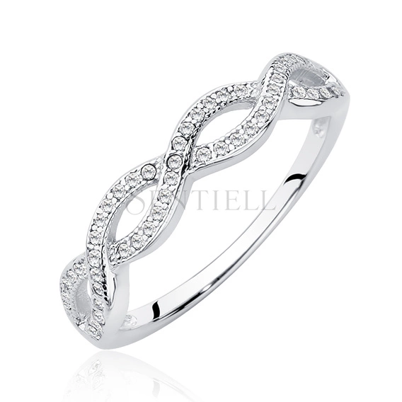 - Rodowany srebrny pierścionek pr. 925 cyrkonia