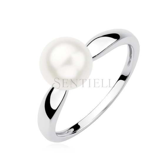 - Rodowany srebrny pierścionek pr. 925 z perełką