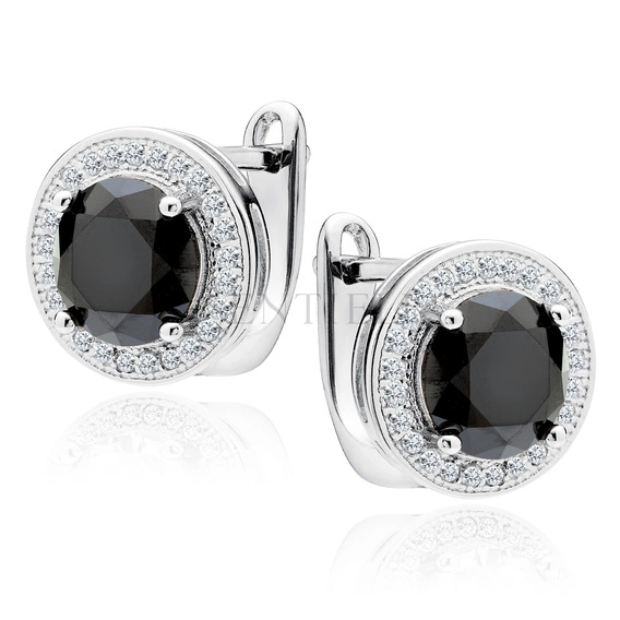 Srebrne pr.925 kolczyki czarna okrągła cyrkonia