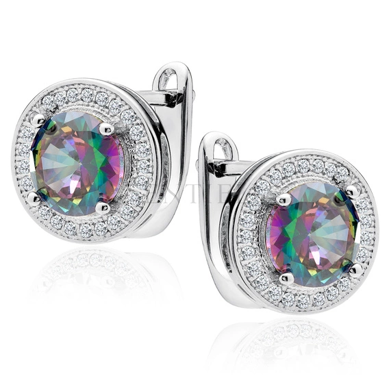 Srebrne pr.925 kolczyki okrągła cyrkonia multikolor