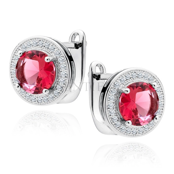 Srebrne pr.925 kolczyki okrągła rubinowa cyrkonia