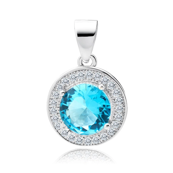 Srebrna zawieszka pr.925 okrągła akwamarynowa cyrkonia