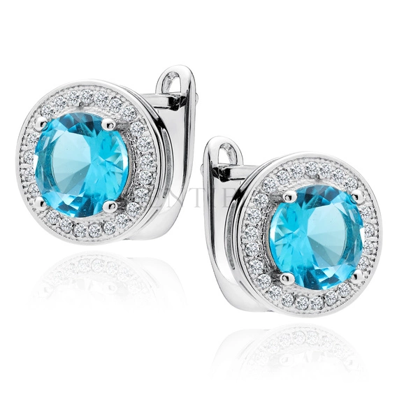 Srebrne pr.925 kolczyki okrągła akwamarynowa cyrkonia