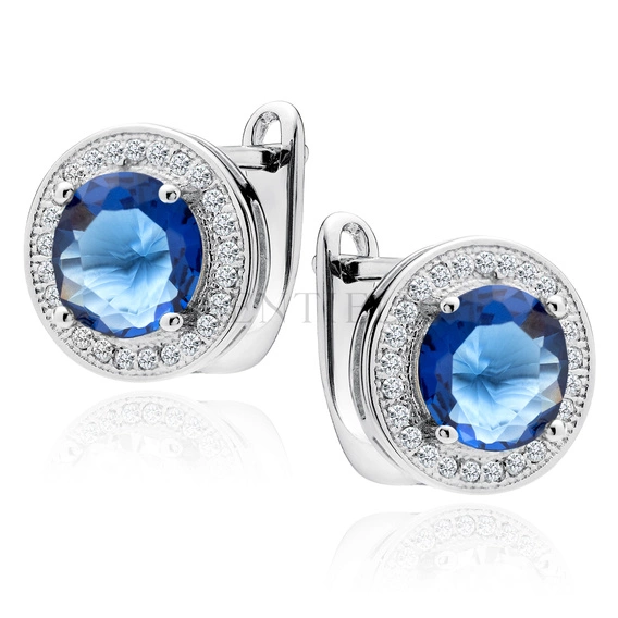 Srebrne pr.925 kolczyki okrągła szafirowa cyrkonia