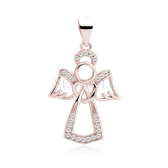 Srebrna pozłacana zawieszka pr.925 anioł z cyrkoniami - różowe złoto
