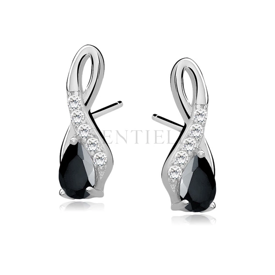Srebrne pr.925 kolczyki cyrkonia czarna