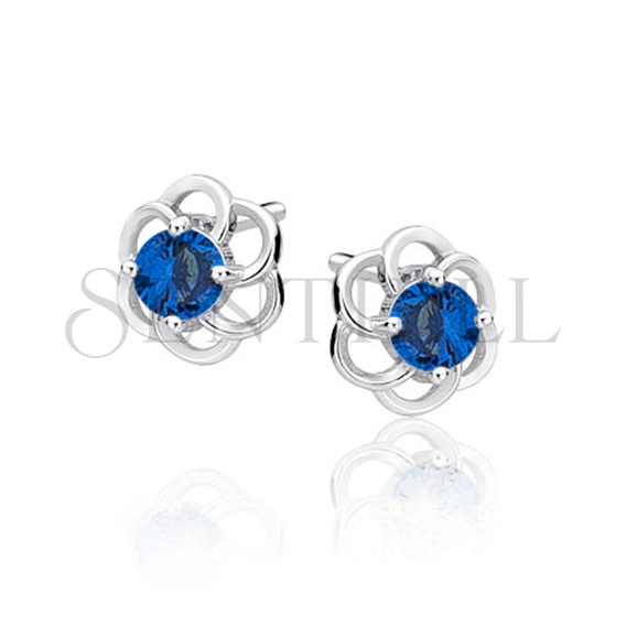 Srebrne kolczyki pr.925 kwiatki z szafirową cyrkonią