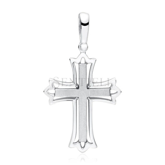 Srebrny pr. 925 krzyżyk rodowany z satynowanym wypełnieniem 37 x 21 mm