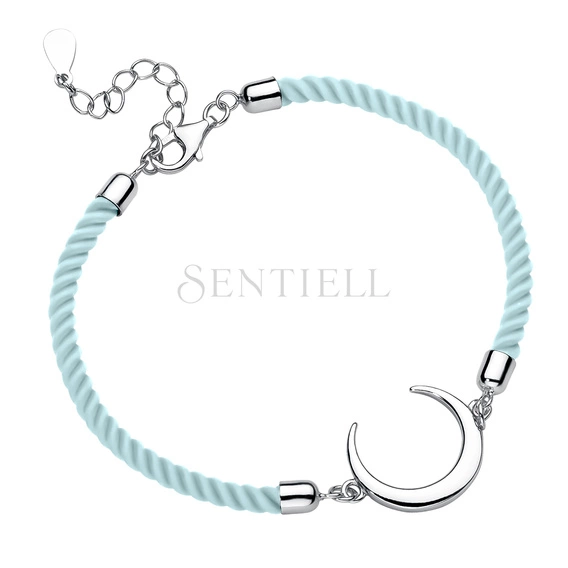 Srebrna pr.925 bransoletka z jasnoniebieskim sznurkiem - półksiężyc