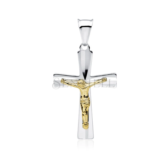 Srebrny pr. 925 krzyżyk rodowany z pozłacanym wizerunkiem 42 x 23 mm