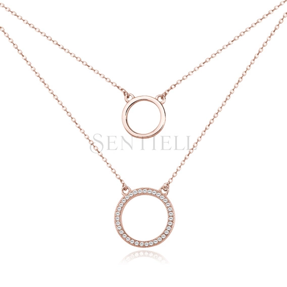 Srebrny pozłacany naszyjnik pr.925 okręgi z cyrkoniami - różowe złoto