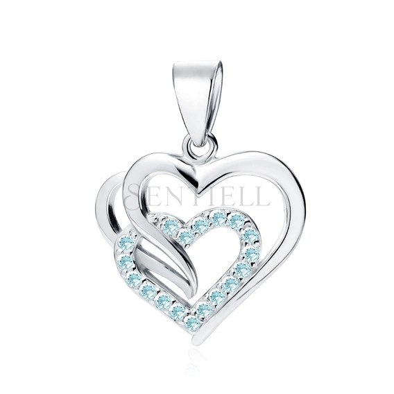 - Srebrna zawieszka pr. 925 potrójne serduszko z akwamarynowymi cyrkoniami