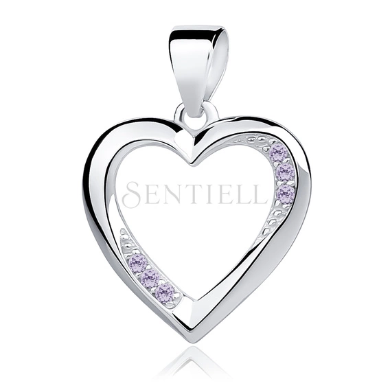 Srebrna zawieszka pr.925 serce z fioletowymi cyrkoniami